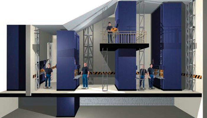 - Sirven para optimizar la gestión de almacenaje de miles de paletas, aprovechando al máximo el espacio de almacenamiento y evitando la entrada y salida de carretillas por los pasillos de la instalación, ya que las mercancías paletizadas se desplazan por la instalación en unos carros satélite de manera completamente automatizada.