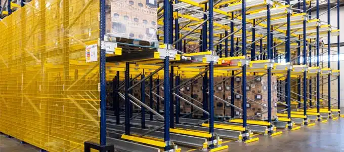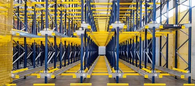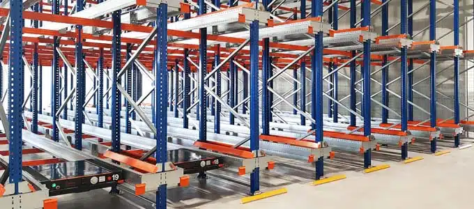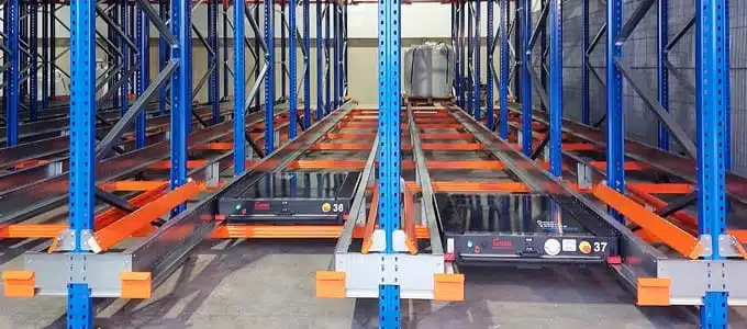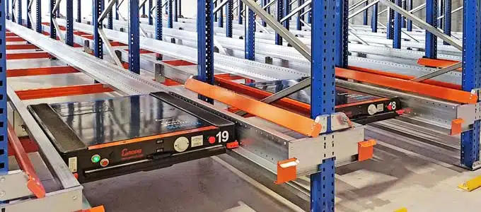 Carro Satélite: estanterías con raíles, sistema de almacenaje de carga en profundidad automatizado